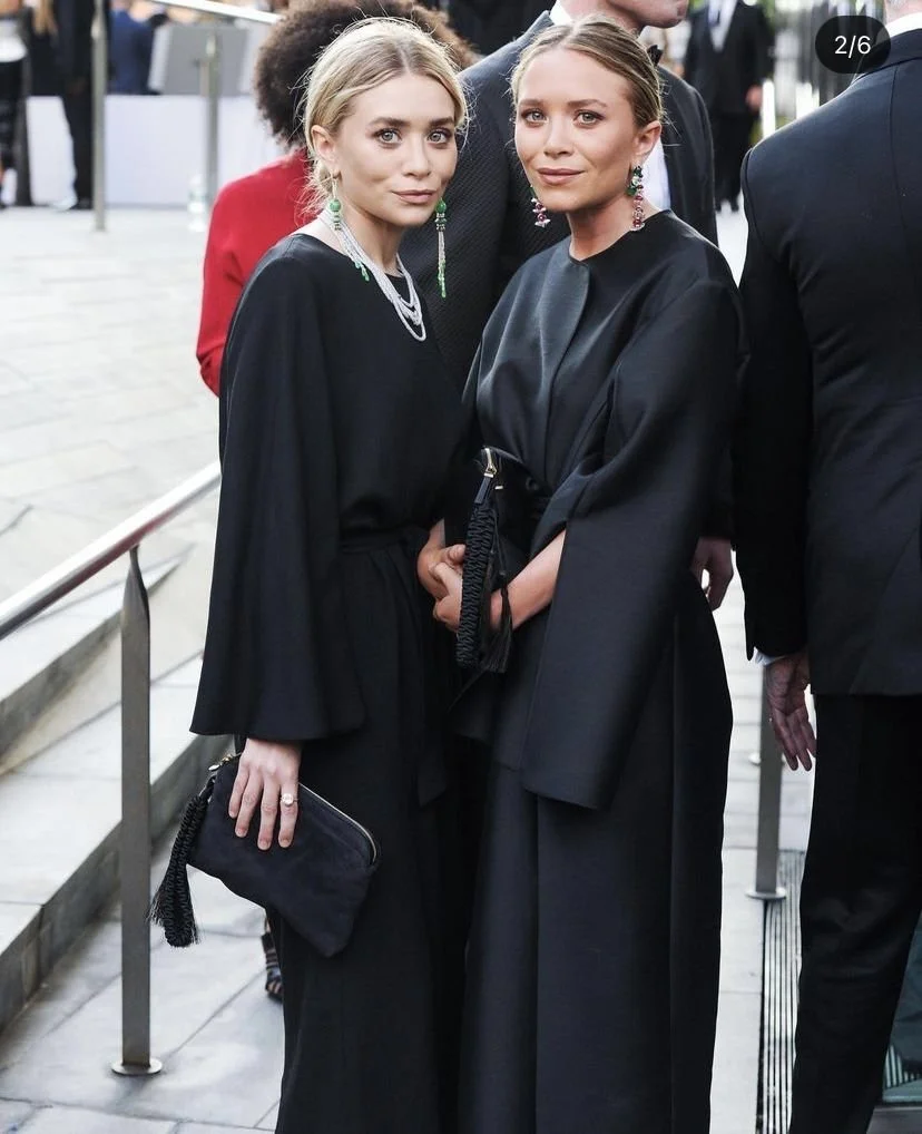 The Olsen twins carried the torch into the 2000s and beyond. With The Row, they created the ultimate expression of timeless luxury: impeccable tailoring, monastic silhouettes, and materials chosen with almost obsessive precision. Their personal style — oversized coats, slouchy knits, worn‑in bags, and a palette of blacks, creams, and greys became the visual language of a generation seeking authenticity over spectacle. Like Birkin, they were often photographed carrying bags softened by use, proving that true luxury lives in longevity, not novelty.